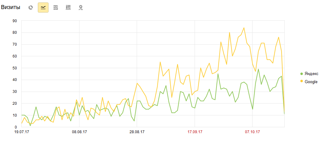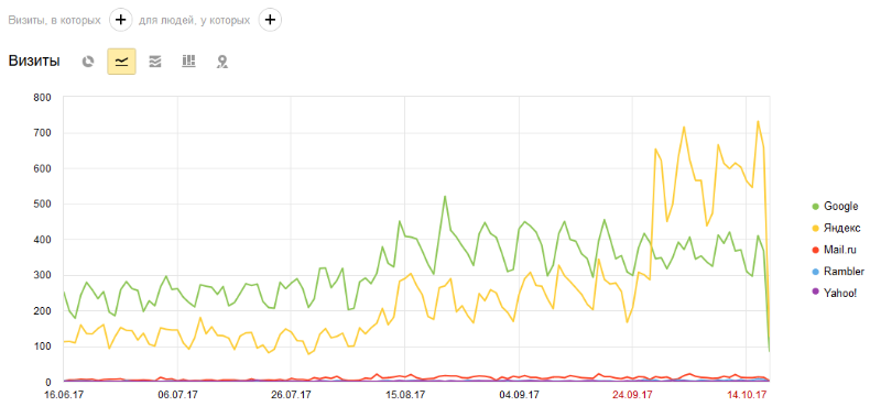Переработка проекта и начало продвижения интернет-магазина без ссылок. 3 месяца работ и 200 посетителей ежедневно с 10 человек в день без покупных ссылок.